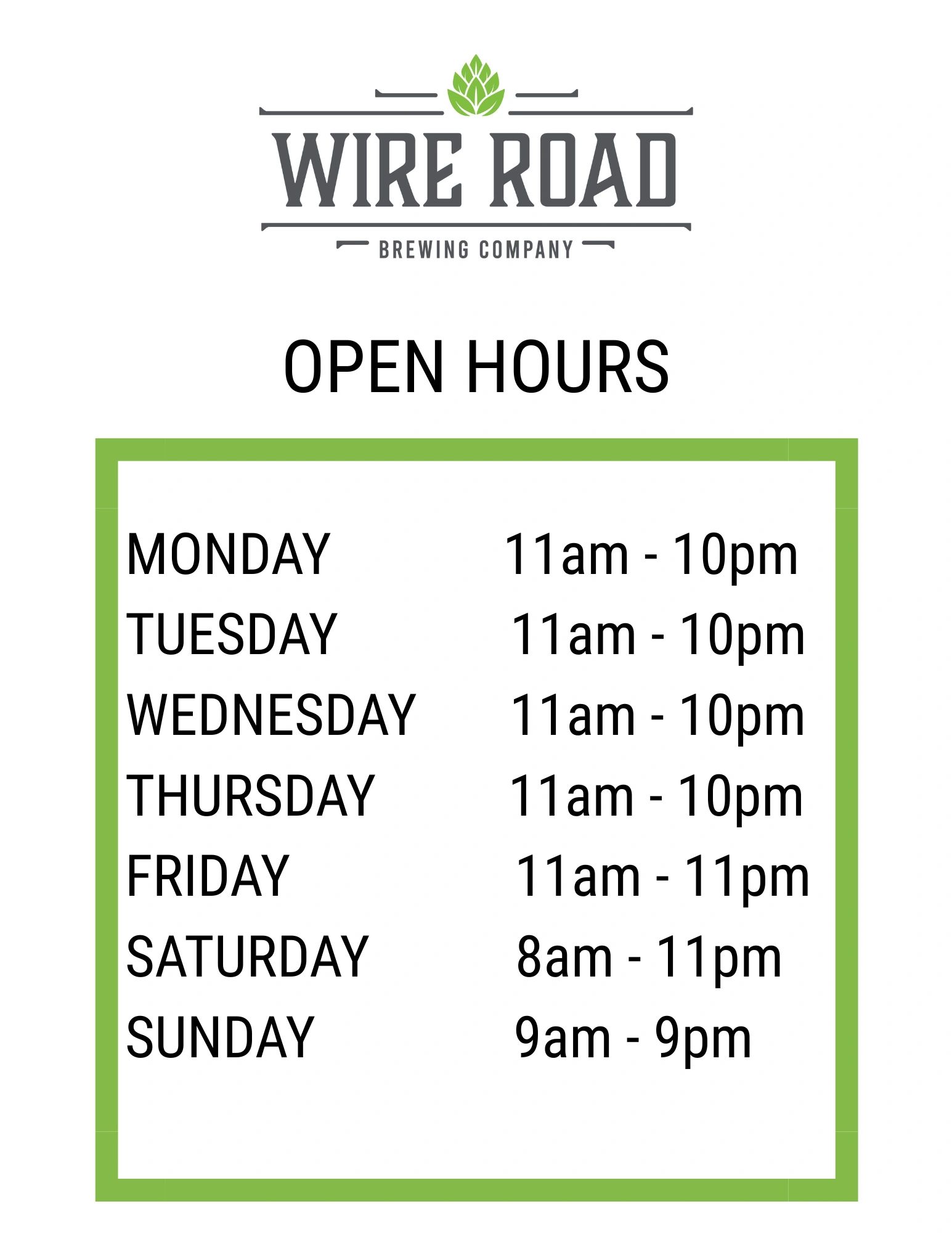 Copyright © 2021 Wire Road Brewing Company. All Rights Reserved.